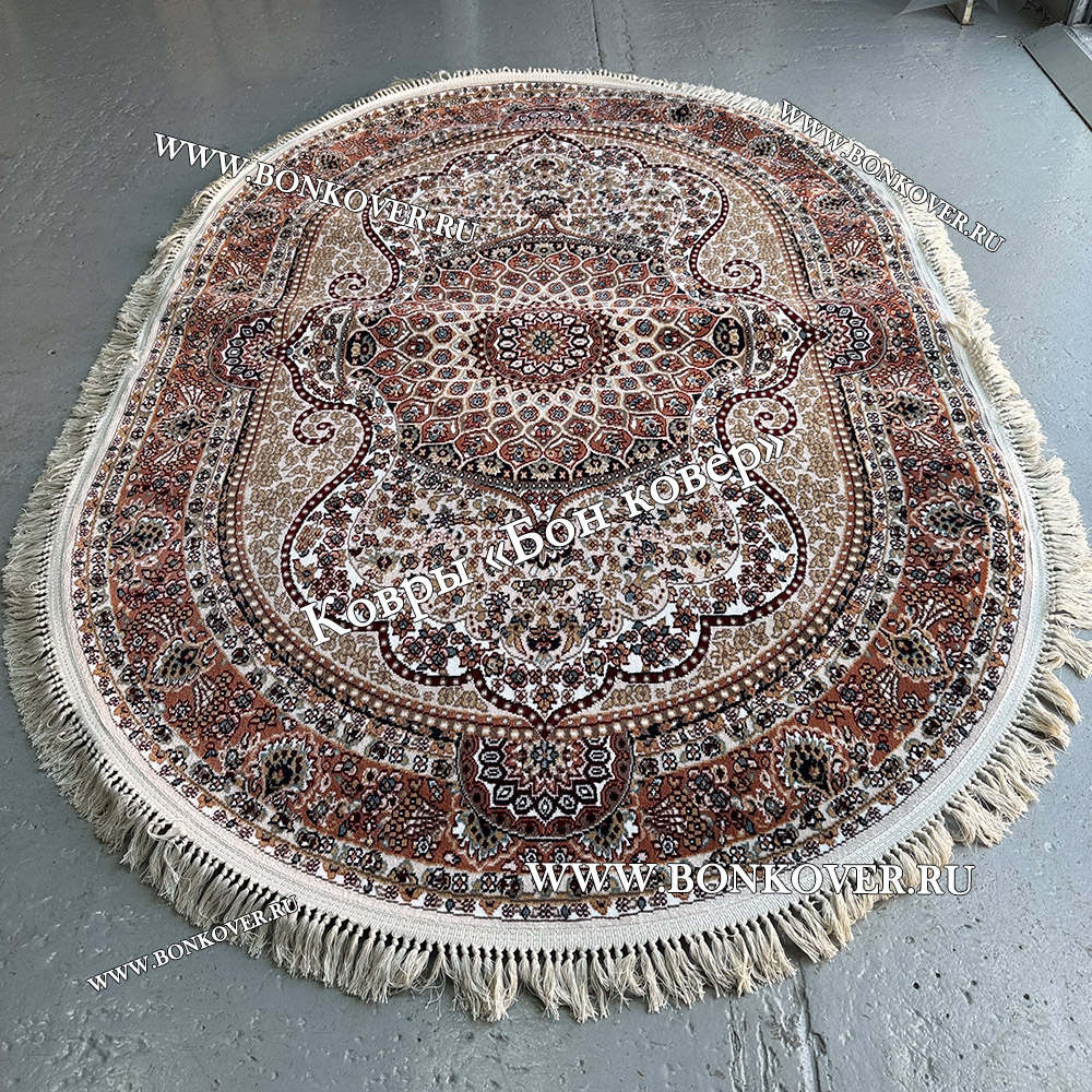 Ковер с Персидским Узором дизайн 46 Овал станет превосходным дополнением интерьера, оформленного в современном или классическом стиле. Мягкое, но прочное, ковровое покрытие обеспечивает тепло- и шумоизоляцию, отличается длительным сроком эксплуатации, надежностью, экологичностью и высокой износостойкостью, является отличной защитой от повышенной влажности в комнате и утеплителем для холодного пола. Благодаря качеству материалов, ковер не деформируется, сохраняет форму под тяжестью предметов мебели. За его поверхностью легко ухаживать.