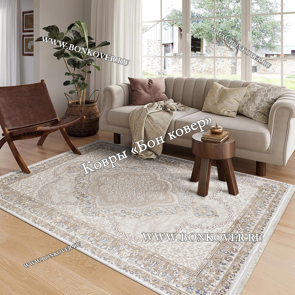 Шикарный Турецкий Ковер Для Гостиной Медальон Дизайн 02 наполняет интерьер комнаты теплом и уютом, гармонично сочетает в себе изящество и стиль. Он соткан из износостойких материалов, комфортный и долговечный.