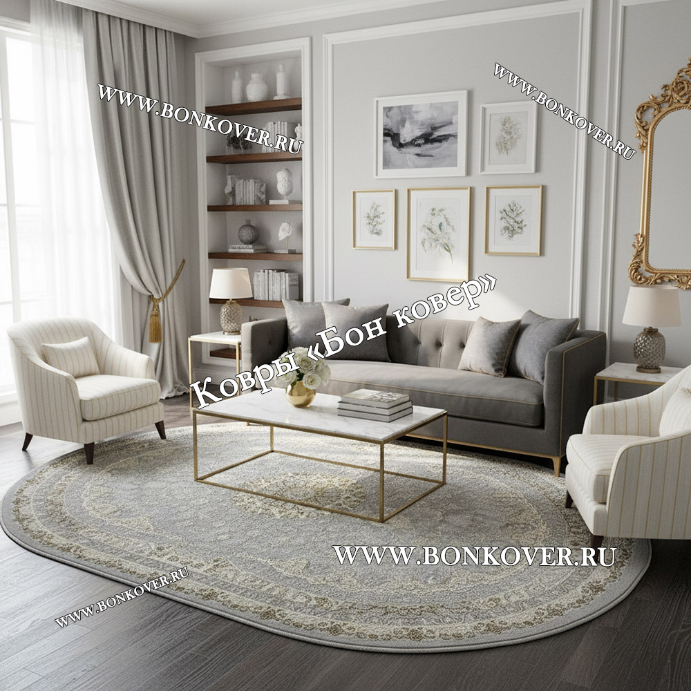 • Турецкий Овальный Ковер Для Гостиной Арт 131 Серый Турецкий Овальный Ковер Для Гостиной Арт 131 Серый